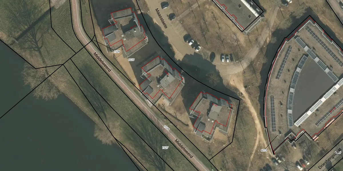 Het perceel waarop Maasstaete 83 staat heeft een oppervlakte van 3950 m². Dit is een zeer groot perceel. De perceeloppervlakte wordt geregistreerd door het Kadaster. Gedetailleerde informatie over de maten van dit perceel kunt u vinden in het rapport Kadastrale kaart met maatvoering van Maasstaete 83.