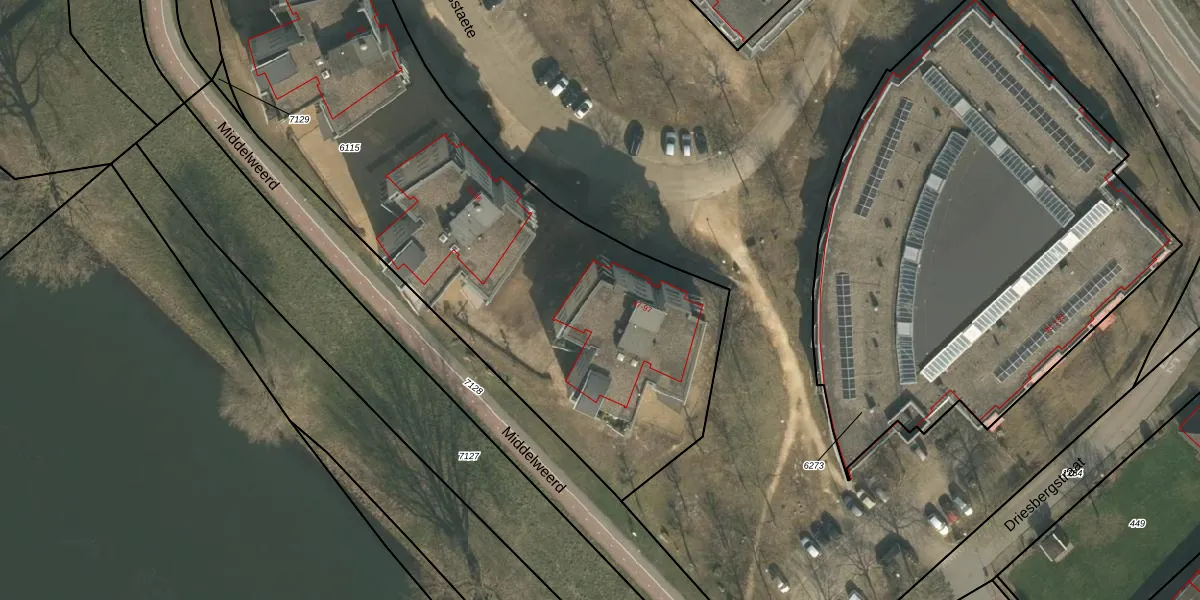 Het adres is gelegen op perceel 6115 in de sectie A en de kadastrale gemeente Mook en Middelaar. De kadastrale aanduiding is aldus MOO00-A-6115. De oppervlakte van het perceel is 3950 m². Dat is groter dan gemiddeld in Mook en Middelaar, waar de gemiddelde perceeloppervlakte op 3464,11 m² ligt. De grootste perceeloppervlakte in de kadastrale gemeente is 79,6 ha. De kleinste oppervlakte bedraagt 0 m². Er zijn 50 adressen aanwezig op het perceel. De huidige grenzen van het perceel zijn digitaal in de Basisregistratie Kadaster (BRK) geregistreerd op 20-08-2020.