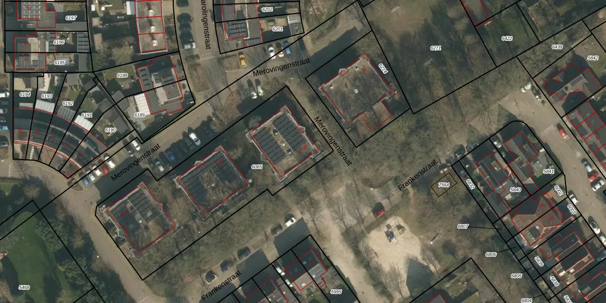 Het perceel waarop Merovingenstraat 22 staat heeft een oppervlakte van 1990 m². Dit is een zeer groot perceel. De perceeloppervlakte wordt geregistreerd door het Kadaster. Gedetailleerde informatie over de maten van dit perceel kunt u vinden in het rapport Kadastrale kaart met maatvoering van Merovingenstraat 22.