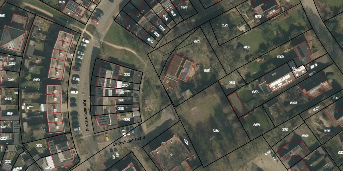 Merovingenstraat 32 is gelegen op kadastraal perceel MOO00A6269. Deze kadastrale aanduiding is uniek en wordt gebruikt door het Kadaster om eigendomsrechten en andere zakelijke rechten vast te leggen. Het perceel maakt onderdeel uit van de kadastrale gemeente Mook en Middelaar.