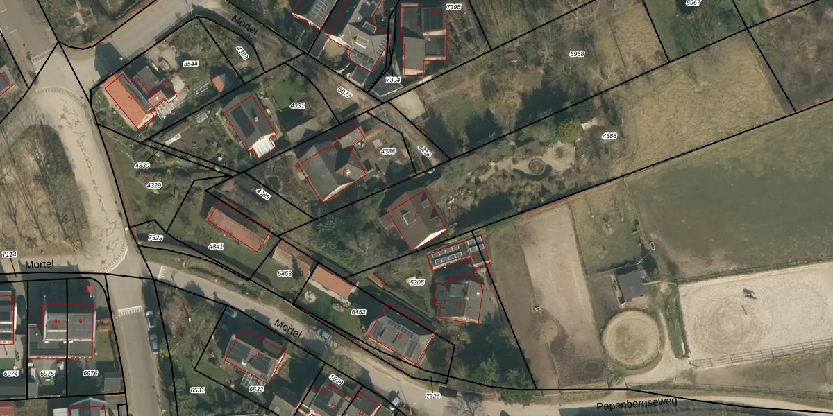 Het perceel waarop Mortel 23 staat heeft een oppervlakte van 2320 m². Dit is een zeer groot perceel. De perceeloppervlakte wordt geregistreerd door het Kadaster. Gedetailleerde informatie over de maten van dit perceel kunt u vinden in het rapport Kadastrale kaart met maatvoering van Mortel 23.
