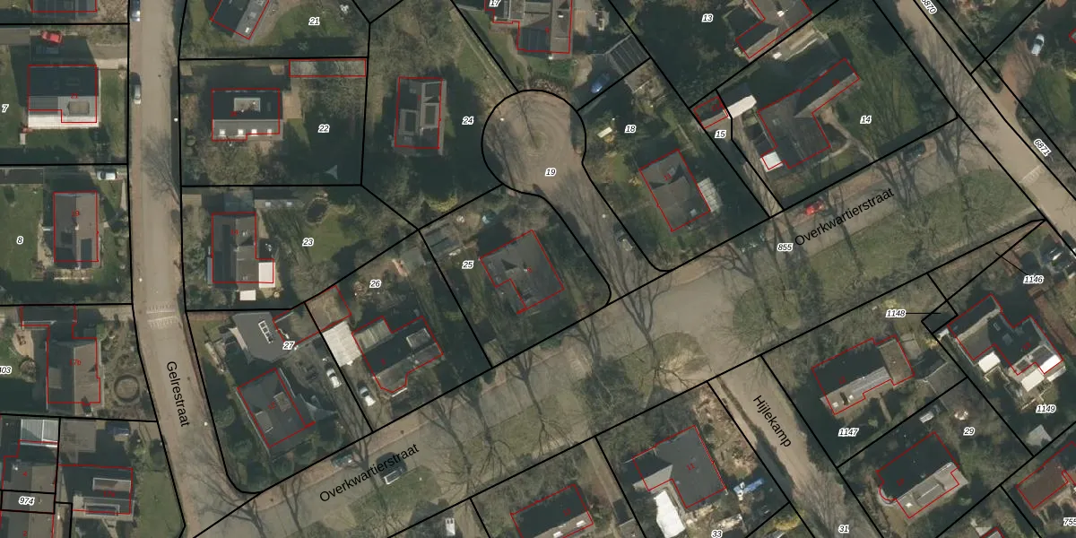 Het perceel waarop Overkwartierstraat 5 staat heeft een oppervlakte van 695 m². Dit is een groot perceel. De perceeloppervlakte wordt geregistreerd door het Kadaster. Gedetailleerde informatie over de maten van dit perceel kunt u vinden in het rapport Kadastrale kaart met maatvoering van Overkwartierstraat 5.