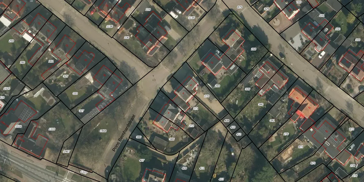 Het perceel waarop Prins Bernhardstraat 6 staat heeft een oppervlakte van 351 m². Dit is een groot perceel. De perceeloppervlakte wordt geregistreerd door het Kadaster. Gedetailleerde informatie over de maten van dit perceel kunt u vinden in het rapport Kadastrale kaart met maatvoering van Prins Bernhardstraat 6.