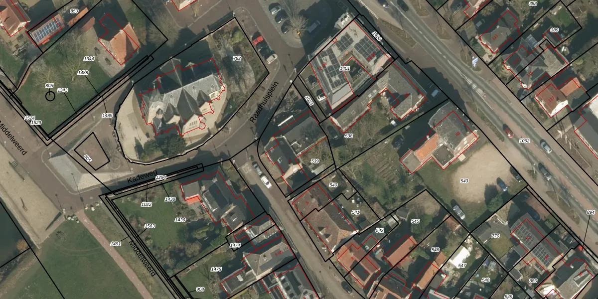 Het perceel waarop Raadhuisplein 10-d staat heeft een oppervlakte van 555 m². Dit is een groot perceel. De perceeloppervlakte wordt geregistreerd door het Kadaster. Gedetailleerde informatie over de maten van dit perceel kunt u vinden in het rapport Kadastrale kaart met maatvoering van Raadhuisplein 10-d.
