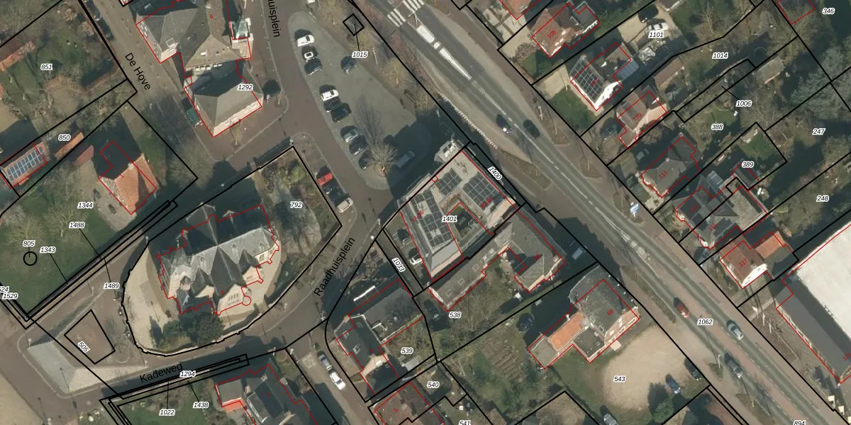 Het perceel waarop Raadhuisplein 18 staat heeft een oppervlakte van 551 m². Dit is een groot perceel. De perceeloppervlakte wordt geregistreerd door het Kadaster. Gedetailleerde informatie over de maten van dit perceel kunt u vinden in het rapport Kadastrale kaart met maatvoering van Raadhuisplein 18.