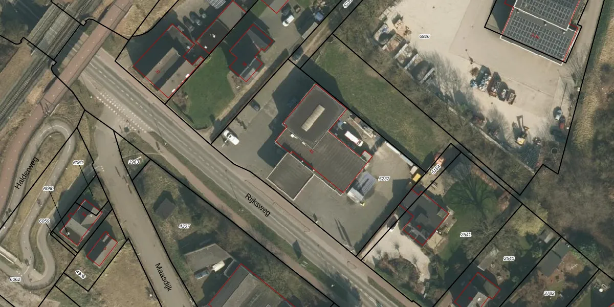 Het perceel waarop Rijksweg 41 staat heeft een oppervlakte van 2150 m². Dit is een zeer groot perceel. De perceeloppervlakte wordt geregistreerd door het Kadaster. Gedetailleerde informatie over de maten van dit perceel kunt u vinden in het rapport Kadastrale kaart met maatvoering van Rijksweg 41.