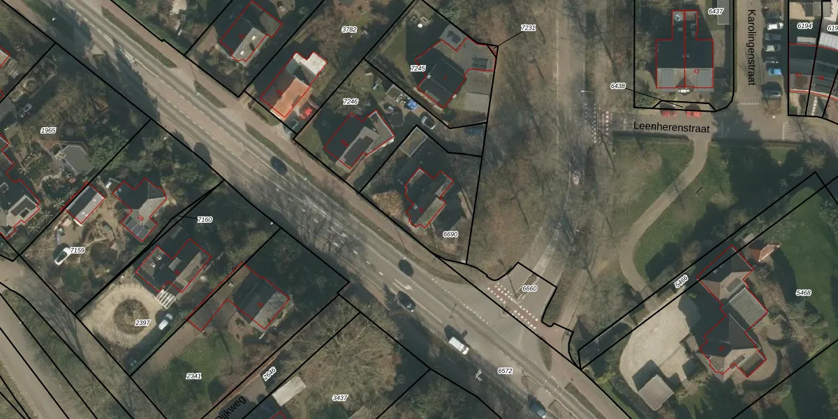 Gebruik de zoekbalk of klik op een perceel voor informatie over de adressen binnen dit perceel.