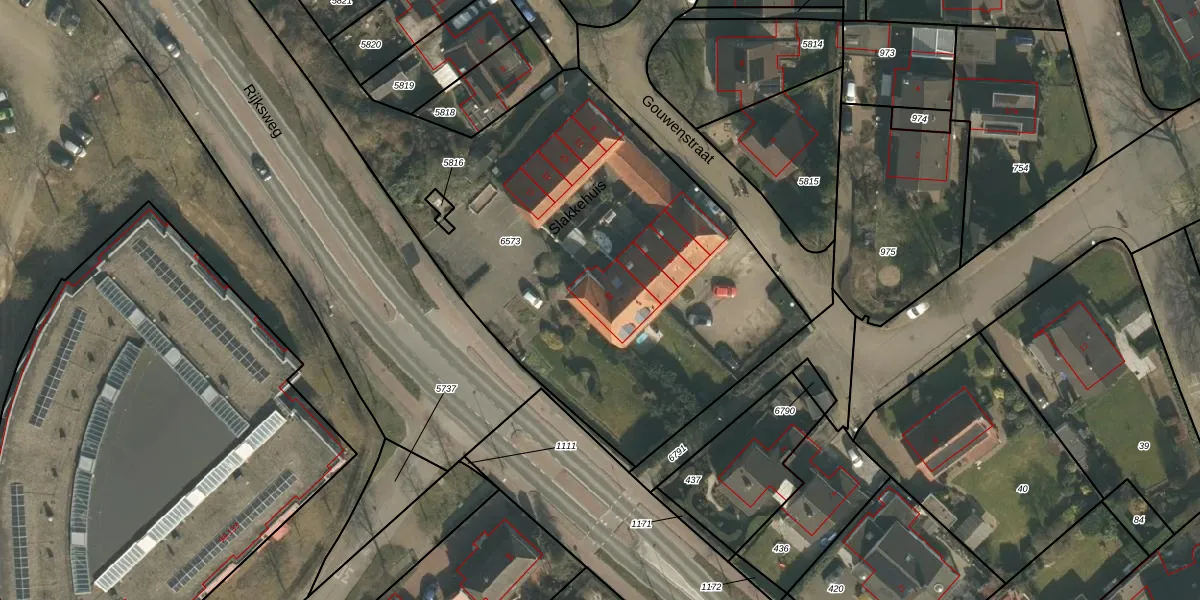 Het perceel waarop Rijksweg 65 staat heeft een oppervlakte van 3015 m². Dit is een zeer groot perceel. De perceeloppervlakte wordt geregistreerd door het Kadaster. Gedetailleerde informatie over de maten van dit perceel kunt u vinden in het rapport Kadastrale kaart met maatvoering van Rijksweg 65.