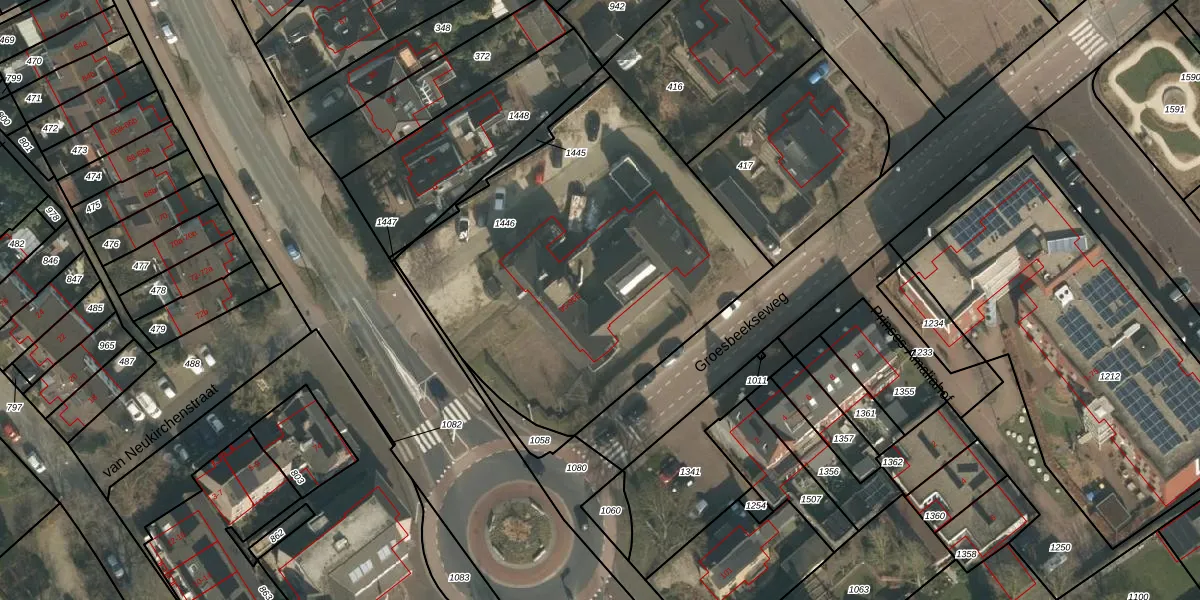Het adres ligt op het perceel MOO00-D-1446, dat zich in de kadastrale gemeente Mook en Middelaar bevindt. De gemiddelde perceelgrootte in Mook en Middelaar is 3467,94 m². Dit perceel is kleiner: de perceeloppervlakte bedraagt 1982 m². Het kleinste perceel in de kadastrale gemeente is 0 m² groot. De grootste perceeloppervlakte is 79,6 ha. Op het perceel liggen in totaal 6 adressen. In de Basisregistratie Kadaster (BRK) werden de grenzen van het perceel geregistreerd op 01-08-2019.