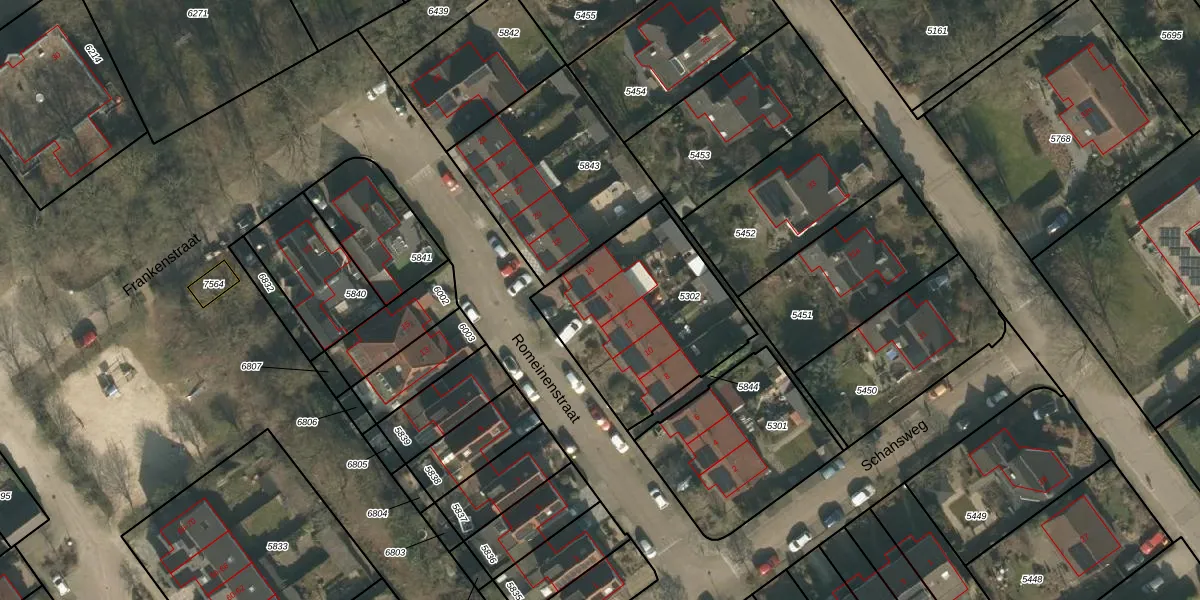 Het perceel waarop Romeinenstraat 14 staat heeft een oppervlakte van 740 m². Dit is een groot perceel. De perceeloppervlakte wordt geregistreerd door het Kadaster. Gedetailleerde informatie over de maten van dit perceel kunt u vinden in het rapport Kadastrale kaart met maatvoering van Romeinenstraat 14.