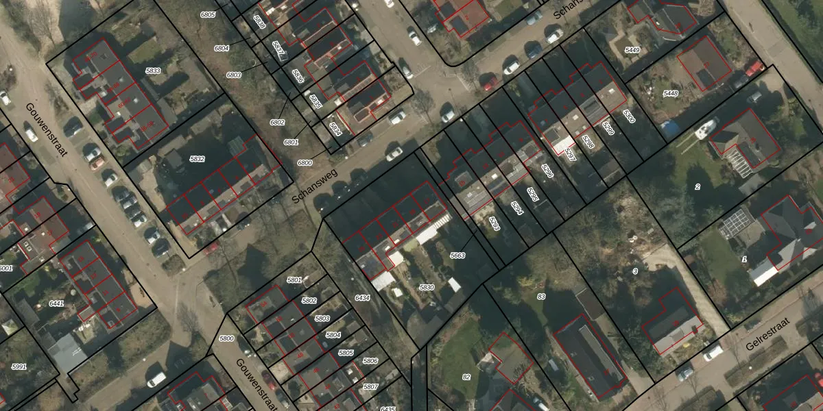 Het perceel waarop Schansweg 19 staat heeft een oppervlakte van 1020 m². Dit is een zeer groot perceel. De perceeloppervlakte wordt geregistreerd door het Kadaster. Gedetailleerde informatie over de maten van dit perceel kunt u vinden in het rapport Kadastrale kaart met maatvoering van Schansweg 19.