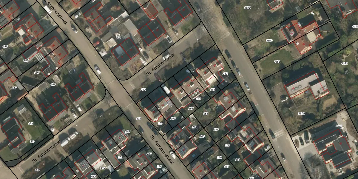 Het perceel waarop St. Adelbertstraat 14 staat heeft een oppervlakte van 210 m². Dit is een middelgroot perceel. De perceeloppervlakte wordt geregistreerd door het Kadaster. Gedetailleerde informatie over de maten van dit perceel kunt u vinden in het rapport Kadastrale kaart met maatvoering van St. Adelbertstraat 14.