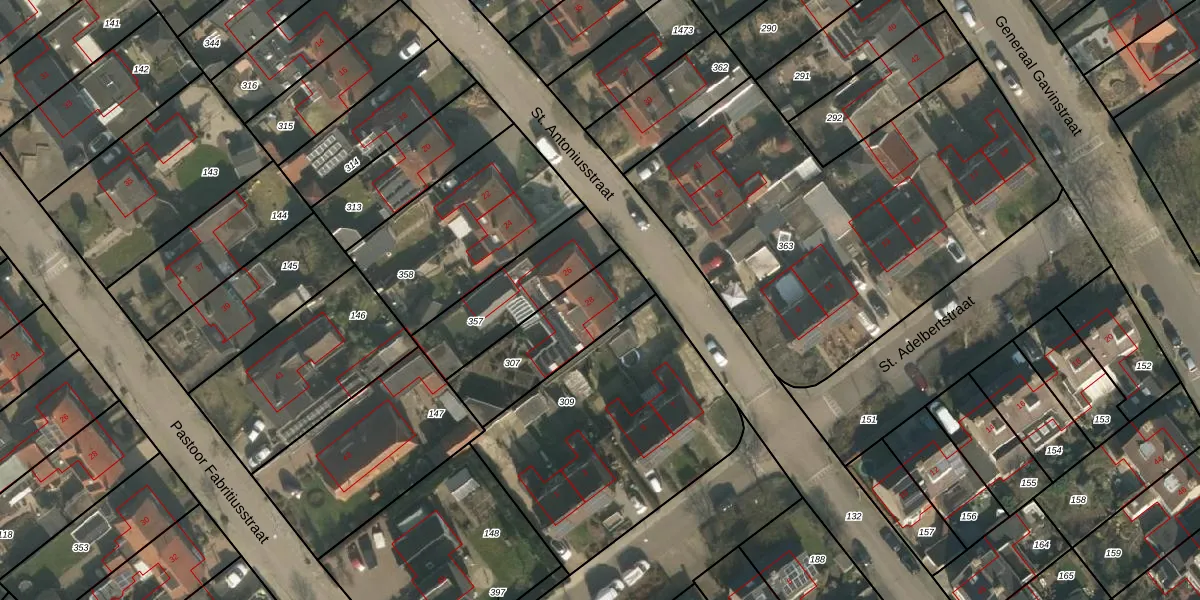 Het perceel waarop St. Antoniusstraat 28 staat heeft een oppervlakte van 350 m². Dit is een groot perceel. De perceeloppervlakte wordt geregistreerd door het Kadaster. Gedetailleerde informatie over de maten van dit perceel kunt u vinden in het rapport Kadastrale kaart met maatvoering van St. Antoniusstraat 28.
