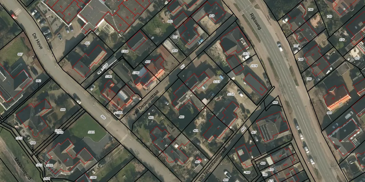 van Dedemstraat 3 is gelegen op kadastraal perceel MOO00D460. Deze kadastrale aanduiding is uniek en wordt gebruikt door het Kadaster om eigendomsrechten en andere zakelijke rechten vast te leggen. Het perceel maakt onderdeel uit van de kadastrale gemeente Mook en Middelaar.