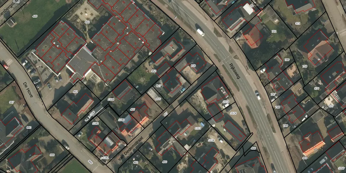 van Dedemstraat 4 is gelegen op kadastraal perceel MOO00D817. Deze kadastrale aanduiding is uniek en wordt gebruikt door het Kadaster om eigendomsrechten en andere zakelijke rechten vast te leggen. Het perceel maakt onderdeel uit van de kadastrale gemeente Mook en Middelaar.