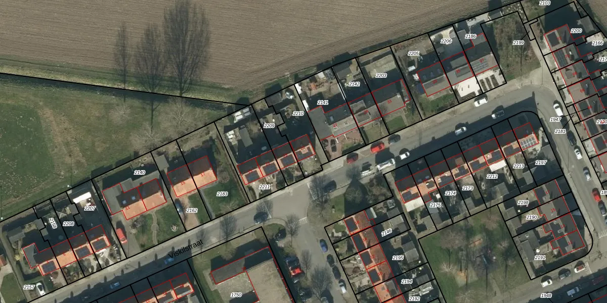 Gebruik de zoekbalk of klik op een perceel voor informatie over de adressen binnen dit perceel.