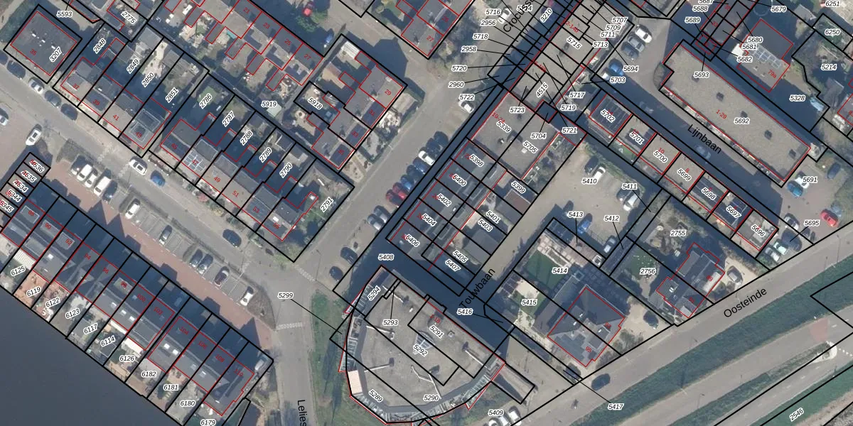 Gebruik de zoekbalk of klik op een perceel voor informatie over de adressen binnen dit perceel.