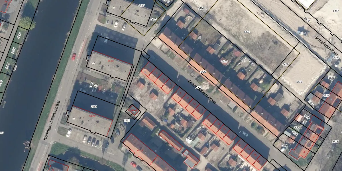 Het perceel waarop Graaf Willemstraat 7 staat heeft een oppervlakte van 5296 m². Dit is een zeer groot perceel. De perceeloppervlakte wordt geregistreerd door het Kadaster. Gedetailleerde informatie over de maten van dit perceel kunt u vinden in het rapport Kadastrale kaart met maatvoering van Graaf Willemstraat 7.