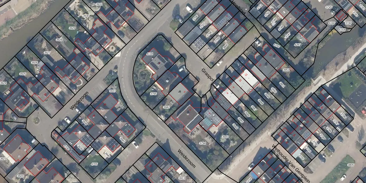 Het perceel waarop Graspol 3 staat heeft een oppervlakte van 265 m². Dit is een middelgroot perceel. De perceeloppervlakte wordt geregistreerd door het Kadaster. Gedetailleerde informatie over de maten van dit perceel kunt u vinden in het rapport Kadastrale kaart met maatvoering van Graspol 3.