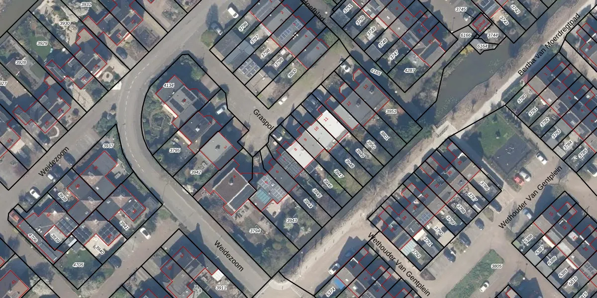 Gebruik de zoekbalk of klik op een perceel voor informatie over de adressen binnen dit perceel.