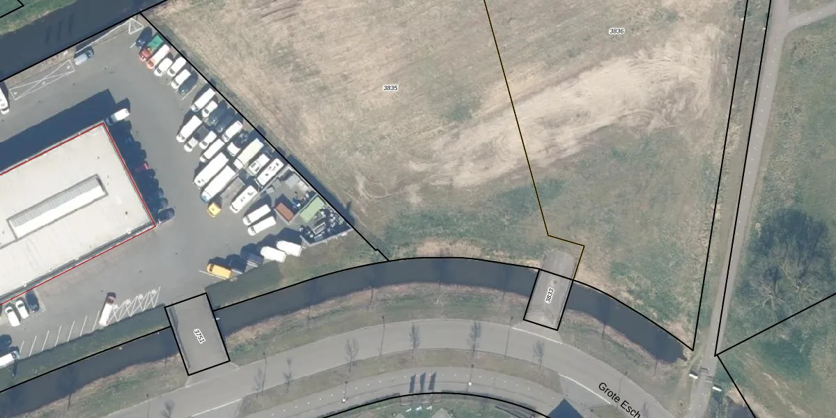 Het perceel waarop Grote Esch 22 staat heeft een oppervlakte van 5165 m². Dit is een zeer groot perceel. De perceeloppervlakte wordt geregistreerd door het Kadaster. Gedetailleerde informatie over de maten van dit perceel kunt u vinden in het rapport Kadastrale kaart met maatvoering van Grote Esch 22.