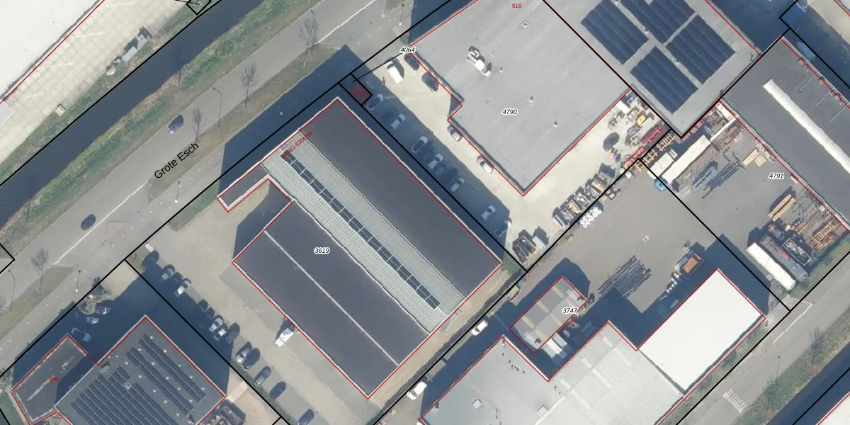 Het perceel waarop Grote Esch 830-c-102 staat heeft een oppervlakte van 4315 m². Dit is een zeer groot perceel. De perceeloppervlakte wordt geregistreerd door het Kadaster. Gedetailleerde informatie over de maten van dit perceel kunt u vinden in het rapport Kadastrale kaart met maatvoering van Grote Esch 830-c-102.