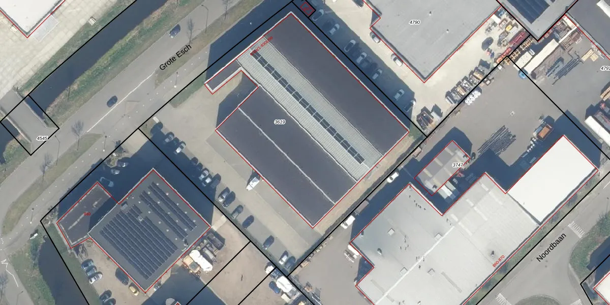 Het perceel waarop Grote Esch 830-a-37 staat heeft een oppervlakte van 4315 m². Dit is een zeer groot perceel. De perceeloppervlakte wordt geregistreerd door het Kadaster. Gedetailleerde informatie over de maten van dit perceel kunt u vinden in het rapport Kadastrale kaart met maatvoering van Grote Esch 830-a-37.