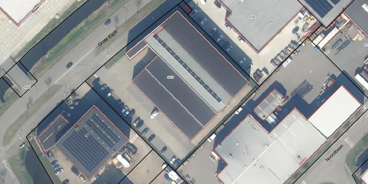 Het perceel waarop Grote Esch 830-a-38 staat heeft een oppervlakte van 4315 m². Dit is een zeer groot perceel. De perceeloppervlakte wordt geregistreerd door het Kadaster. Gedetailleerde informatie over de maten van dit perceel kunt u vinden in het rapport Kadastrale kaart met maatvoering van Grote Esch 830-a-38.