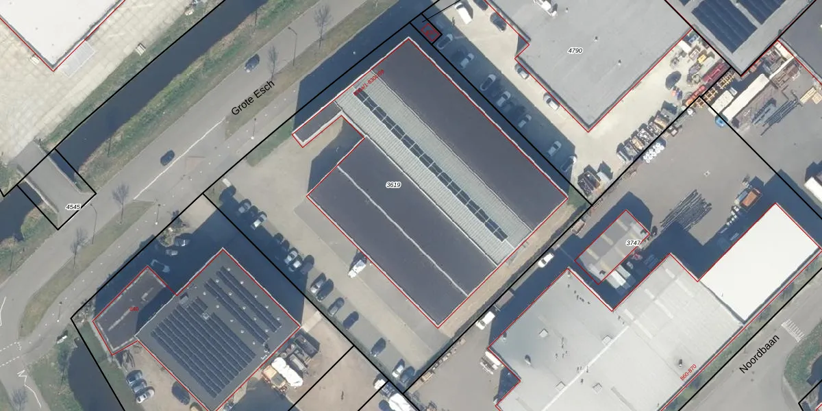 Het perceel waarop Grote Esch 830-a-40 staat heeft een oppervlakte van 4315 m². Dit is een zeer groot perceel. De perceeloppervlakte wordt geregistreerd door het Kadaster. Gedetailleerde informatie over de maten van dit perceel kunt u vinden in het rapport Kadastrale kaart met maatvoering van Grote Esch 830-a-40.