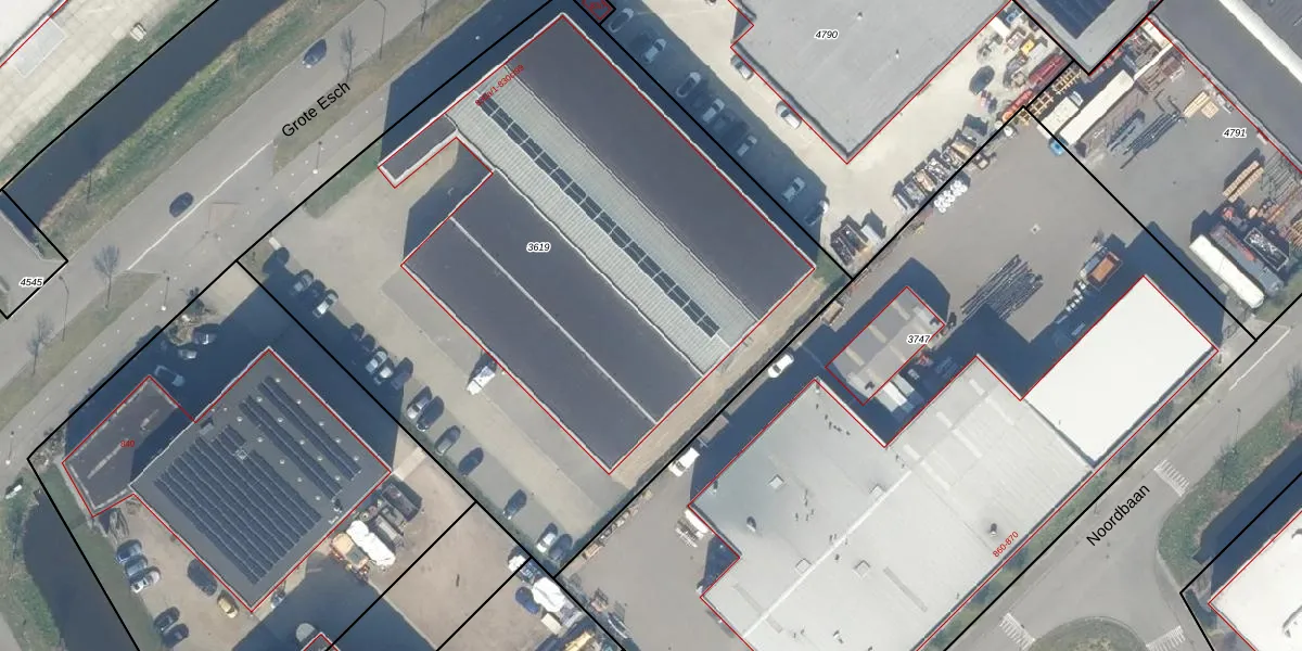 Het perceel waarop Grote Esch 830-b-49 staat heeft een oppervlakte van 4315 m². Dit is een zeer groot perceel. De perceeloppervlakte wordt geregistreerd door het Kadaster. Gedetailleerde informatie over de maten van dit perceel kunt u vinden in het rapport Kadastrale kaart met maatvoering van Grote Esch 830-b-49.