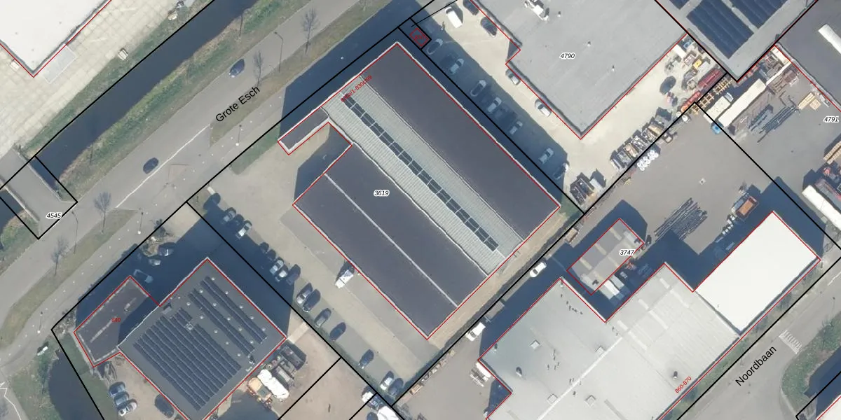 Het perceel waarop Grote Esch 830-b-54 staat heeft een oppervlakte van 4315 m². Dit is een zeer groot perceel. De perceeloppervlakte wordt geregistreerd door het Kadaster. Gedetailleerde informatie over de maten van dit perceel kunt u vinden in het rapport Kadastrale kaart met maatvoering van Grote Esch 830-b-54.