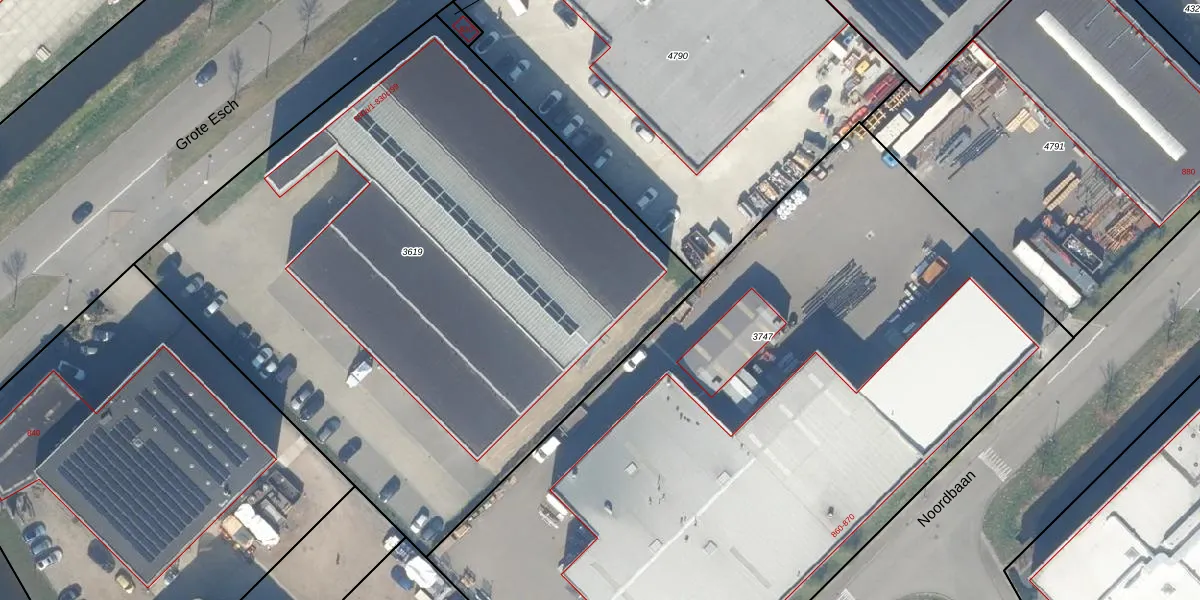 Het perceel waarop Grote Esch 830-c-77 staat heeft een oppervlakte van 4315 m². Dit is een zeer groot perceel. De perceeloppervlakte wordt geregistreerd door het Kadaster. Gedetailleerde informatie over de maten van dit perceel kunt u vinden in het rapport Kadastrale kaart met maatvoering van Grote Esch 830-c-77.
