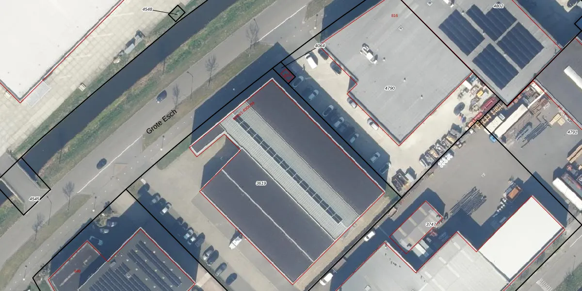 Het perceel waarop Grote Esch 830-c-87 staat heeft een oppervlakte van 4315 m². Dit is een zeer groot perceel. De perceeloppervlakte wordt geregistreerd door het Kadaster. Gedetailleerde informatie over de maten van dit perceel kunt u vinden in het rapport Kadastrale kaart met maatvoering van Grote Esch 830-c-87.