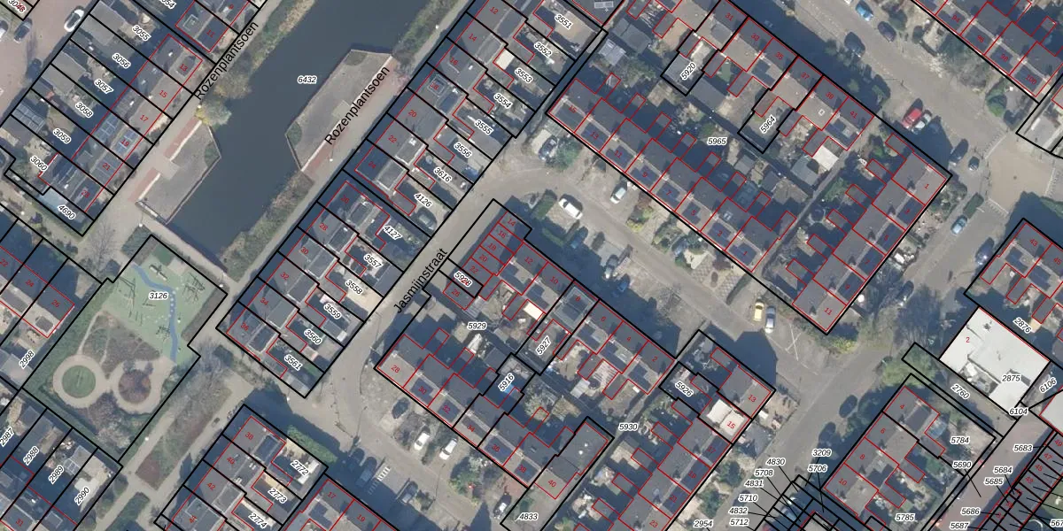 Het perceel waarop Jasmijnstraat 12 staat heeft een oppervlakte van 731 m². Dit is een groot perceel. De perceeloppervlakte wordt geregistreerd door het Kadaster. Gedetailleerde informatie over de maten van dit perceel kunt u vinden in het rapport Kadastrale kaart met maatvoering van Jasmijnstraat 12.