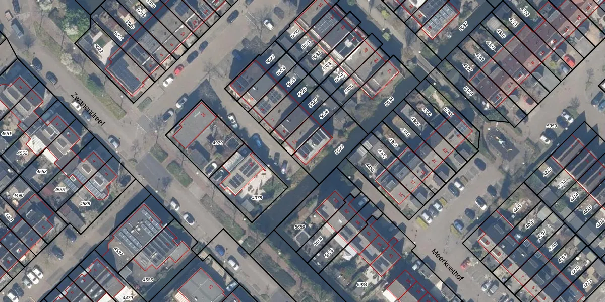 Gebruik de zoekbalk of klik op een perceel voor informatie over de adressen binnen dit perceel.