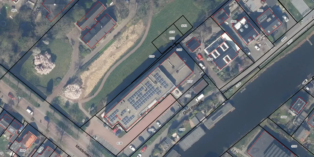 Het adres is gelegen op perceel 6137 in de sectie C en de kadastrale gemeente Moordrecht. De kadastrale aanduiding is aldus MDT02-C-6137. Het perceel is kleiner dan gemiddeld in Moordrecht. Het perceel is 1580 m² groot, terwijl het gemiddelde ligt op 2545,92 m². Het kleinste perceel in de kadastrale gemeente is 0 m² groot. De grootste perceeloppervlakte is 21,7 ha. Op het perceel zijn 37 adressen aanwezig. De laatste wijziging in het de Basisregistratie Kadaster (BRK) was op 05-09-2022.