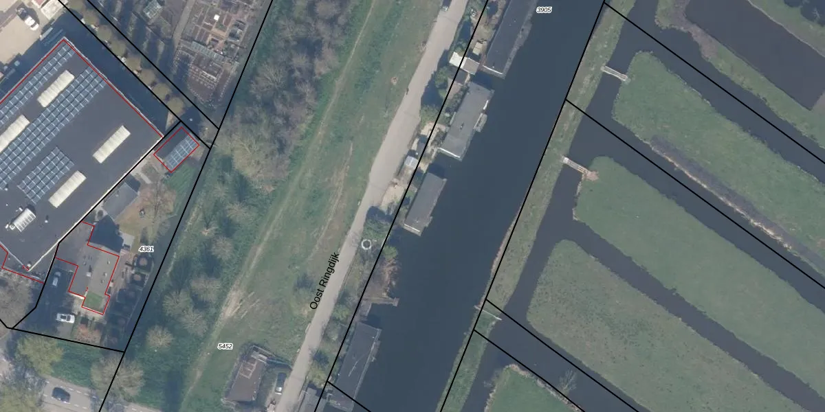 Het perceel waarop Oost Ringdijk 104 staat heeft een oppervlakte van 5330 m². Dit is een zeer groot perceel. De perceeloppervlakte wordt geregistreerd door het Kadaster. Gedetailleerde informatie over de maten van dit perceel kunt u vinden in het rapport Kadastrale kaart met maatvoering van Oost Ringdijk 104.