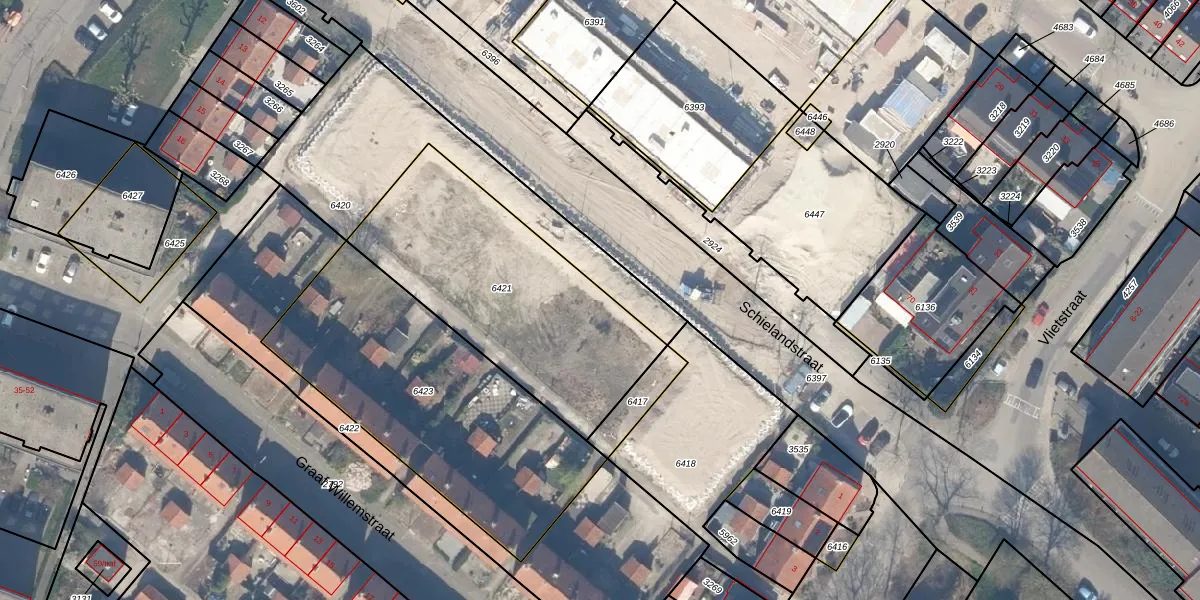Het perceel waarop Schielandstraat 21 staat heeft een oppervlakte van 1103 m². Dit is een zeer groot perceel. De perceeloppervlakte wordt geregistreerd door het Kadaster. Gedetailleerde informatie over de maten van dit perceel kunt u vinden in het rapport Kadastrale kaart met maatvoering van Schielandstraat 21.