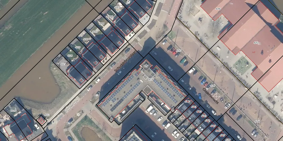 Het perceel waarop Schuddebeurslaan 2-a staat heeft een oppervlakte van 1545 m². Dit is een zeer groot perceel. De perceeloppervlakte wordt geregistreerd door het Kadaster. Gedetailleerde informatie over de maten van dit perceel kunt u vinden in het rapport Kadastrale kaart met maatvoering van Schuddebeurslaan 2-a.