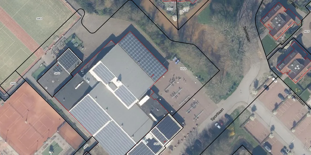 Het perceel waarop Sportlaan 3-b staat heeft een oppervlakte van 6880 m². Dit is een zeer groot perceel. De perceeloppervlakte wordt geregistreerd door het Kadaster. Gedetailleerde informatie over de maten van dit perceel kunt u vinden in het rapport Kadastrale kaart met maatvoering van Sportlaan 3-b.