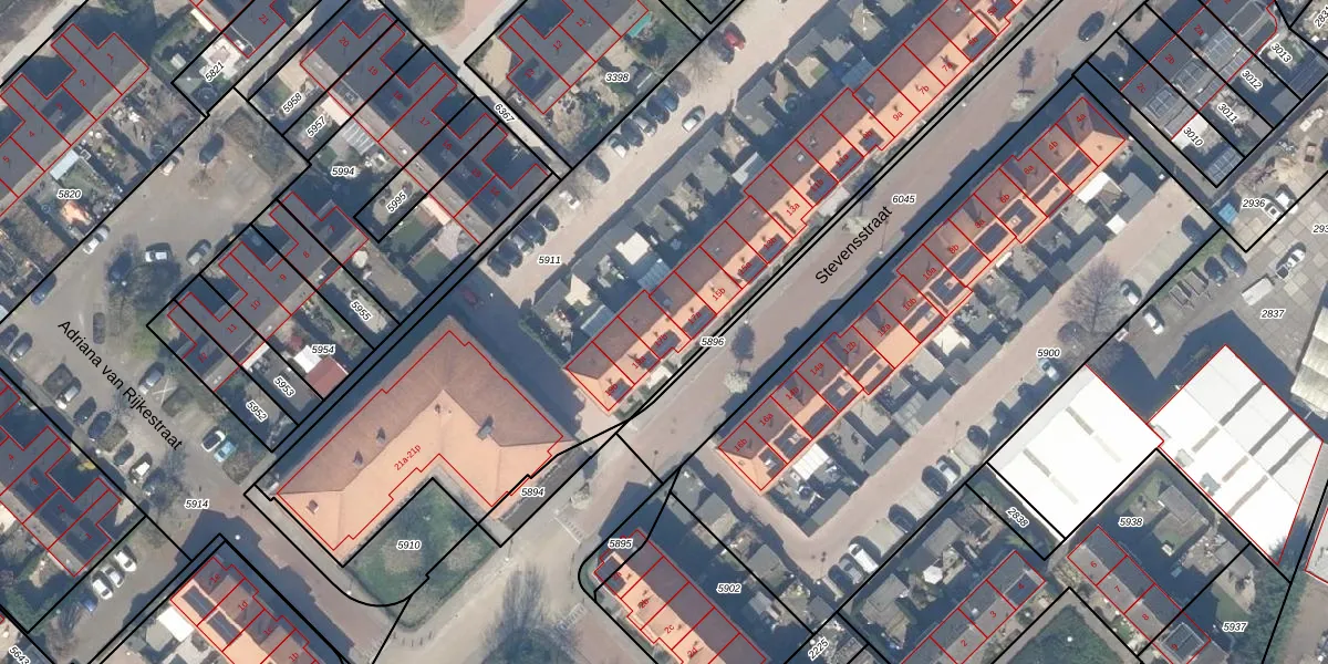 Het perceel waarop Stevensstraat 17-b staat heeft een oppervlakte van 4340 m². Dit is een zeer groot perceel. De perceeloppervlakte wordt geregistreerd door het Kadaster. Gedetailleerde informatie over de maten van dit perceel kunt u vinden in het rapport Kadastrale kaart met maatvoering van Stevensstraat 17-b.