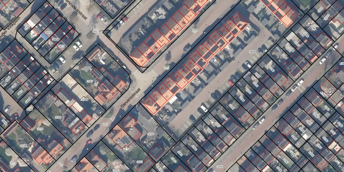 Het perceel waarop Stevensstraat 28-a staat heeft een oppervlakte van 3380 m². Dit is een zeer groot perceel. De perceeloppervlakte wordt geregistreerd door het Kadaster. Gedetailleerde informatie over de maten van dit perceel kunt u vinden in het rapport Kadastrale kaart met maatvoering van Stevensstraat 28-a.