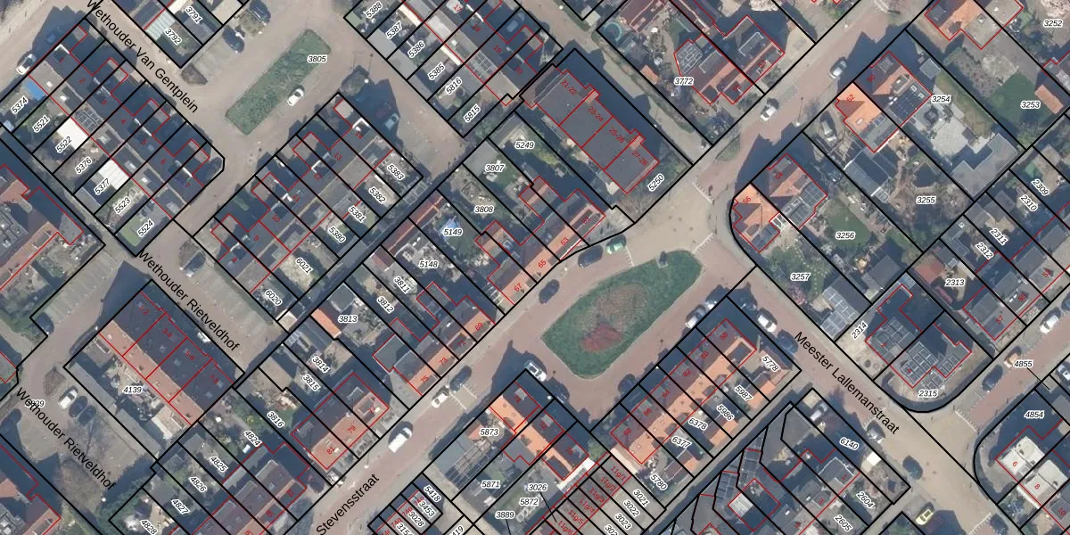 Gebruik de zoekbalk of klik op een perceel voor informatie over de adressen binnen dit perceel.