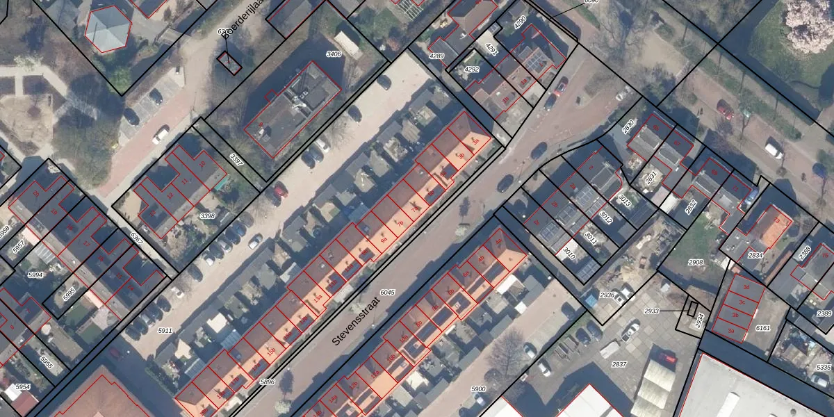 Het perceel waarop Stevensstraat 7-a staat heeft een oppervlakte van 4340 m². Dit is een zeer groot perceel. De perceeloppervlakte wordt geregistreerd door het Kadaster. Gedetailleerde informatie over de maten van dit perceel kunt u vinden in het rapport Kadastrale kaart met maatvoering van Stevensstraat 7-a.