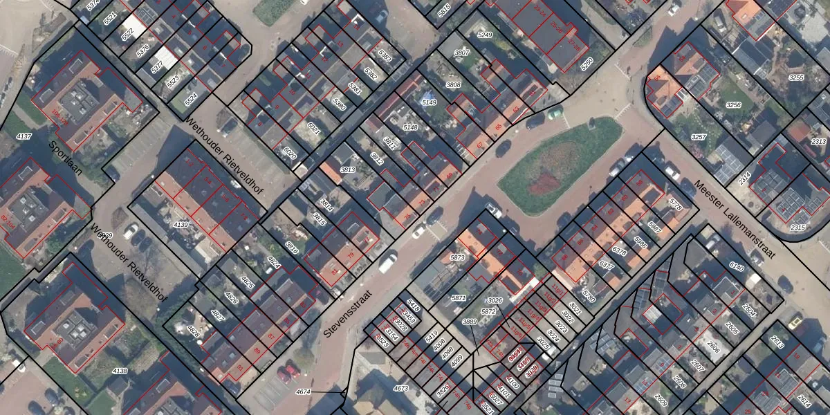Gebruik de zoekbalk of klik op een perceel voor informatie over de adressen binnen dit perceel.