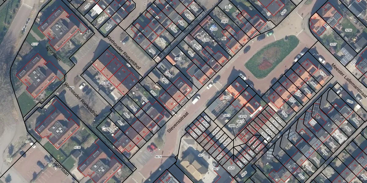 Gebruik de zoekbalk of klik op een perceel voor informatie over de adressen binnen dit perceel.