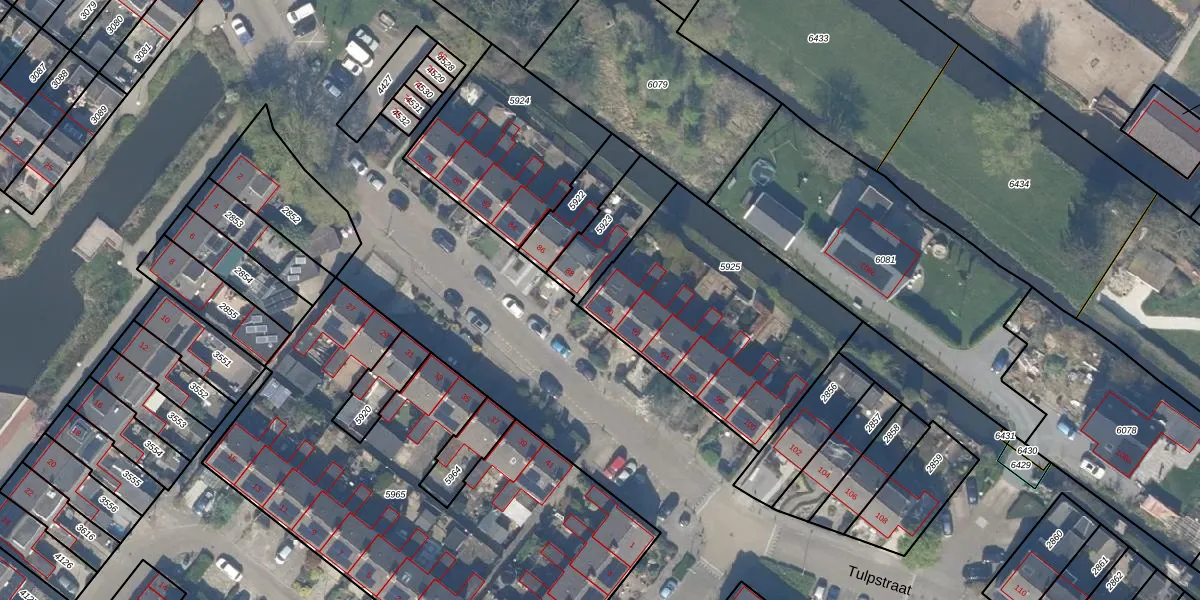 Het perceel waarop Tulpstraat 90 staat heeft een oppervlakte van 1040 m². Dit is een zeer groot perceel. De perceeloppervlakte wordt geregistreerd door het Kadaster. Gedetailleerde informatie over de maten van dit perceel kunt u vinden in het rapport Kadastrale kaart met maatvoering van Tulpstraat 90.
