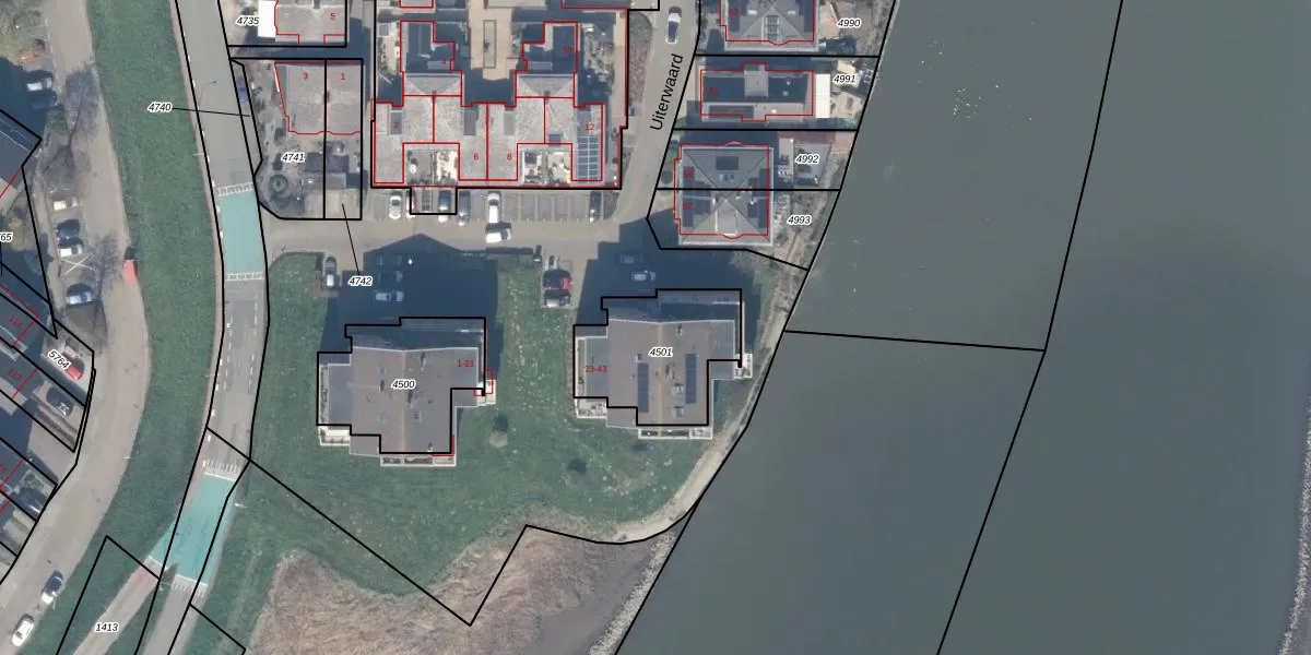 Het perceel waarop Uiterwaard 35 staat heeft een oppervlakte van 409 m². Dit is een groot perceel. De perceeloppervlakte wordt geregistreerd door het Kadaster. Gedetailleerde informatie over de maten van dit perceel kunt u vinden in het rapport Kadastrale kaart met maatvoering van Uiterwaard 35.