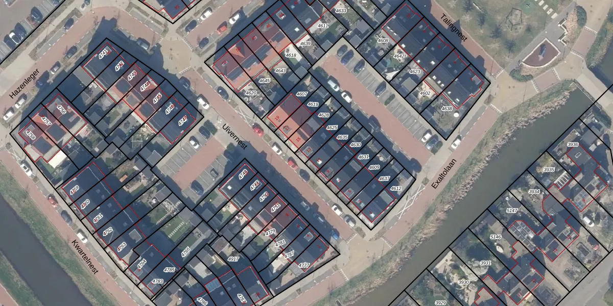 Het perceel waarop Uivernest 13 staat heeft een oppervlakte van 106 m². Dit is een middelgroot perceel. De perceeloppervlakte wordt geregistreerd door het Kadaster. Gedetailleerde informatie over de maten van dit perceel kunt u vinden in het rapport Kadastrale kaart met maatvoering van Uivernest 13.