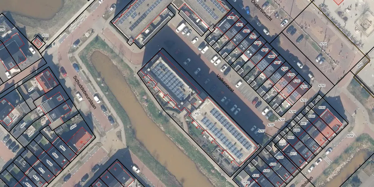 Het perceel waarop Valkennest 16 staat heeft een oppervlakte van 1675 m². Dit is een zeer groot perceel. De perceeloppervlakte wordt geregistreerd door het Kadaster. Gedetailleerde informatie over de maten van dit perceel kunt u vinden in het rapport Kadastrale kaart met maatvoering van Valkennest 16.